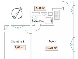 Il est composé d'une d'une pièce de 23.41M² avec dressing entrée et cuisine ouverte qui SERA AMÉNAGÉE ET équipée (plaque, hotte, four ,frigo/congélateur haut , lave vaisselle en 45 cm), une chambre de 11.56m² , une salle de bains avec Wc et emplacement machine à laver le linge en 60 cm.